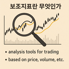 교육 목적의 정보이며, 투자 결과를 보장하지 않습니다. 실제 매매는 본인 책임입니다. 손절 / 익절 등 리스크 관리를 먼저 정하세요. 한눈에 보기 보조지표란? 왜 쓰나 유형 한눈에 보기 이 글에선 이름만 소개하고 끝! 자세한 계산법·세팅·신호 해석은 다음 글에서 지표별로 따로 다룹니다. 읽는 법 핵심 주의할 점 예시로 확인 상황 해석 힌트 더보기